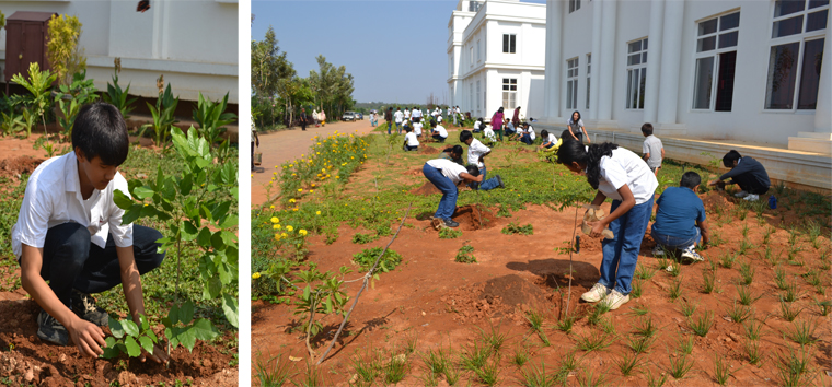 Candor International School celebrated Earth Day with a number of activities. Two grade 7 students sang Louise Armstrong’s, ‘What a wonderful world’ to a mime about the wonderful world that is now being destroyed. Two hundred saplings were then planted around the campus by students and teachers. A poster and photo exhibition by both PYP and MS students on ‘The Face of Climate Change’ displayed their creativity and meaningful reflection through the captions. The strong message for the need to wake up and do something to save the earth was clear. Students of K2, grades 1 and 2 projected their impressions of the Earth through their art work. A slogan writing activity further demonstrated student’s thoughts about climate change. Painting on old T-shirts and Diya/pot painting happened simultaneously with the K1 T-shirt finger-painting . The day ended with students reading out poems on Earth Day and self- composed poems. This was followed by two solo performances of an earth song and a very moving self- composed song by a 10th grader and set to music by the music teachers.