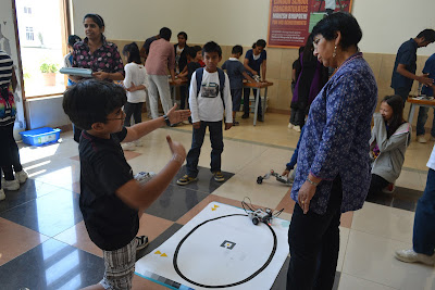 Grade 9 students Manan and Humin made a robot car with touch and sound sensor. Touch sensor helped the car to sense the obstacles and move back and according to the sound around the sound sensor changed the speed of the car. Other students, staff and new parents witnessed the various models and enjoyed the functioning of the Robots as much as the students who built them.