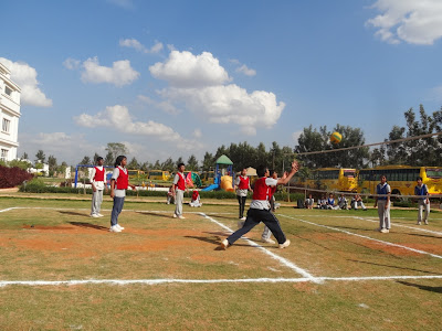 Throw ball challenge was held recently and the results were as follows.The first Semi-finals match was played between Red house and Green house in which the Red house won the match (2-0 sets). The second Semi-finals match was played between Blue house and Yellow house in which the Blue house emerged as the winners (2-1 sets). The third & fourth place was played between Green house and Yellow house in which Yellow house won by a close margin (2-1 sets).